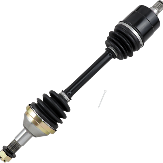 Caracteristicas: Precision machined and heat treated solid chromoly steel center shaft, cages, races and ball bearings up to 35% stronger Highest quality, most reliable, and toughest constant velocity axles on the market Manufactured in a state-of-the-art ISO9001 and TS16949 certified factory Induction heat treated joints packed with high performance moly grease Designed to withstand the most rigorous conditions and terrain High-strength spring steel retaining clips (where required) Torture tested to failure to ensure maximum durability Exceed OEM quality in fit, form and function Secure stainless steel dust boot clamps Fully assembled for easy installation Precision rolled splines and threads