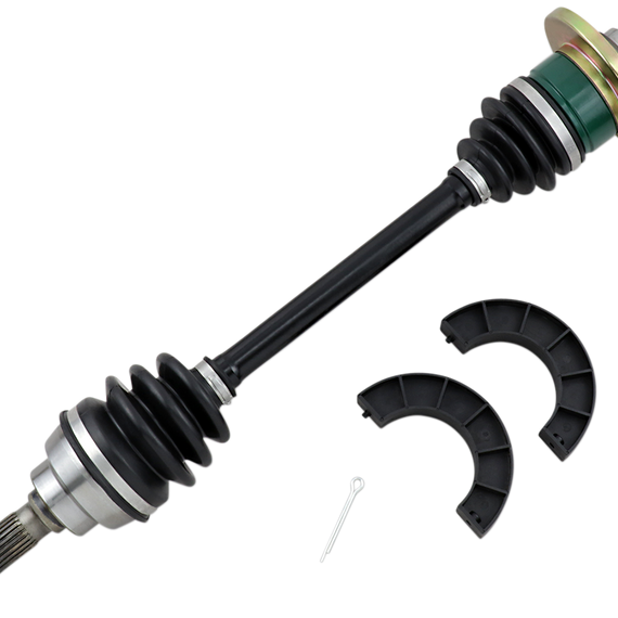 Caracteristicas: Precision machined and heat treated solid chromoly steel center shaft, cages, races and ball bearings up to 35% stronger Highest quality, most reliable, and toughest constant velocity axles on the market Manufactured in a state-of-the-art ISO9001 and TS16949 certified factory Induction heat treated joints packed with high performance moly grease Designed to withstand the most rigorous conditions and terrain High-strength spring steel retaining clips (where required) Torture tested to failure to ensure maximum durability Exceed OEM quality in fit, form and function Secure stainless steel dust boot clamps Fully assembled for easy installation Precision rolled splines and threads