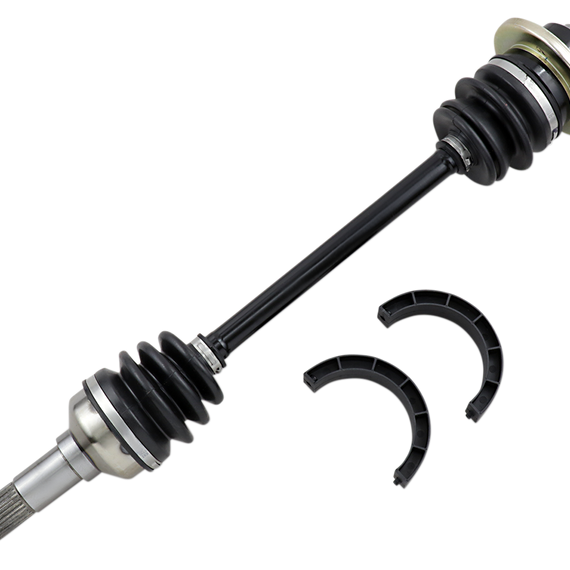 Caracteristicas: Precision machined and heat treated solid chromoly steel center shaft, cages, races and ball bearings up to 35% stronger Highest quality, most reliable, and toughest constant velocity axles on the market Manufactured in a state-of-the-art ISO9001 and TS16949 certified factory Induction heat treated joints packed with high performance moly grease Designed to withstand the most rigorous conditions and terrain High-strength spring steel retaining clips (where required) Torture tested to failure to ensure maximum durability Exceed OEM quality in fit, form and function Secure stainless steel dust boot clamps Fully assembled for easy installation Precision rolled splines and threads