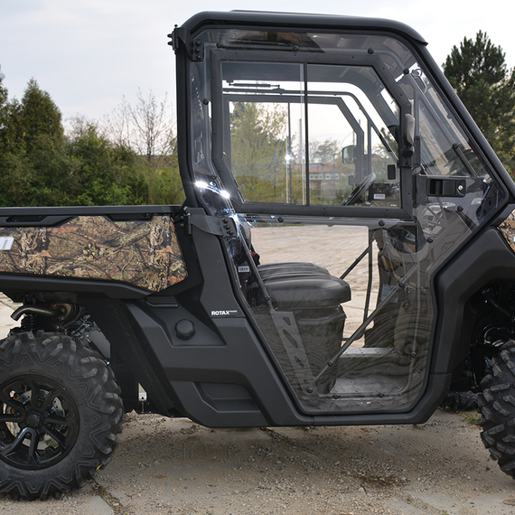 Caracteristicas: Complete cabs include tilt windshield, roof, rear panel and door set; tilt windshield/roof/rear panel and door set also available separately Front windshields are made of laminated tempered safety glass; two-position tilt-out function is gas cylinder assisted; wiper and washer kit sold separately; window is attached to the overhead guard with a metal clamping system and locks in two positions for air intake Roof is constructed of 13 gauge steel, zinc coated and then powder coated to provide maximum rust protection; noise-reduction insulation is affixed on the inside of the roof as well as metal frames and supports Rear panel is made from 5mm transparent, double UV protected, twice hardened coated polycarbonate sheet Doors are made from a combination of the safety glass (sliding windows) and the transparent, double UV protected, hard coated polycarbonate with metal reinforcing structure; both doors are lockable and fully openable; each door is equipped with a heavy-duty, key locking latch system Cab heater kit and wiper/washer kits sold separately - see Related Products No drilling into the frame is necessary during the entire installation