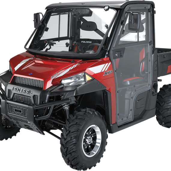 Caracteristicas: Complete cabs include tilt windshield, roof, rear panel and door set; tilt windshield/roof/rear panel and door set also available separately Front windshields are made of laminated tempered safety glass; two-position tilt-out function is gas cylinder assisted; wiper and washer kit sold separately; window is attached to the overhead guard with a metal clamping system and locks in two positions for air intake Roof is constructed of 13 gauge steel, zinc coated and then powder coated to provide maximum rust protection; noise-reduction insulation is affixed on the inside of the roof as well as metal frames and supports Rear panel is made from 5mm transparent, double UV protected, twice hardened coated polycarbonate sheet Doors are made from a combination of the safety glass (sliding windows) and the transparent, double UV protected, hard coated polycarbonate with metal reinforcing structure; both doors are lockable and fully openable; each door is equipped with a heavy-duty, key locking latch system Cab heater kit and wiper/washer kits sold separately - see Related Products No drilling into the frame is necessary during the entire installation