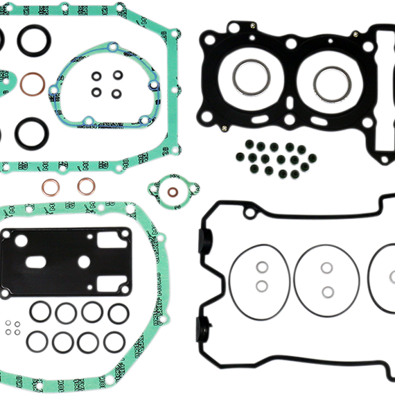 Caracteristicas: Superior-quality gasket sets from Athena Head gaskets feature rubber-coated spring steel construction Soft steel base gaskets are rubber coated Steel core materials feature high springback and superior tensile strength Revolutionary transparent coating guarantees a perfect seal even at extremely high temperatures High-temperature blue silicone beading on most critical flat gaskets Includes all necessary top-quality gaskets, rubber parts and valve stem seals to rebuild top-end and complete engines respectively Oil seals not included