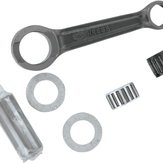 Caracteristicas: Heavy-duty OE replacement connecting rods Certified 8620 AISI steel provides superior strength Crankpins are manufactured from hot-rolled ASTM 4115 and case hardened to 58-62Rc Feature the latest in caged needle roller bearing designs for high rpm longevity Uniquely designed big end uses strategically located side scalloping and vent slots to minimize bearing race distortion at high rpm Small ends are double drilled to supply extra lubrication and cooling to the wrist pin bearing, which is especially important when the piston crown is close to the wrist pin bearing Shot-peened to eliminate surface stress risers and to smoothly blend together the rod forging's radiuses Double honing produces an ultra-round bearing surface for reliability at high rpm Most rod assemblies are sold complete with rod, crank pin, crank pin bearing, top-end bearing and silver-coated bronze phosphor thrust washers Compatible with Hot Rods and OE crankshafts Made in U.S.A.; connecting rod manufactured at Hot Rods Iowa facility
