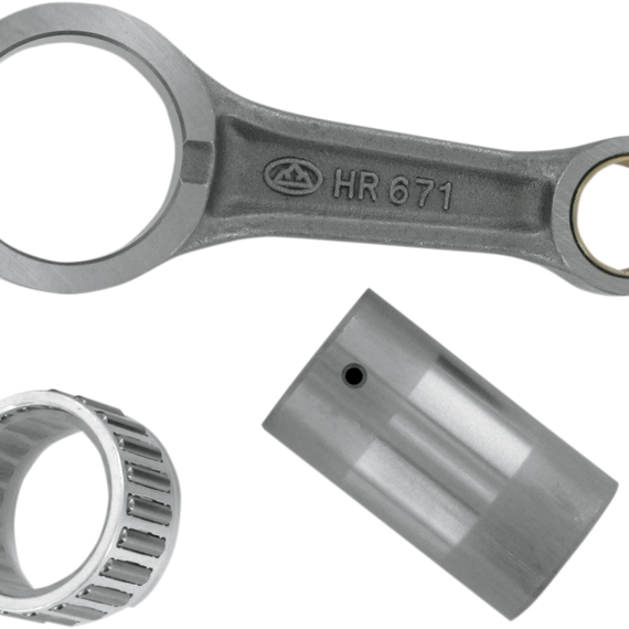 Caracteristicas: Heavy-duty OE replacement connecting rods Certified 8620 AISI steel provides superior strength Crankpins are manufactured from hot-rolled ASTM 4115 and case hardened to 58-62Rc Feature the latest in caged needle roller bearing designs for high rpm longevity Uniquely designed big end uses strategically located side scalloping and vent slots to minimize bearing race distortion at high rpm Small ends are double drilled to supply extra lubrication and cooling to the wrist pin bearing, which is especially important when the piston crown is close to the wrist pin bearing Shot-peened to eliminate surface stress risers and to smoothly blend together the rod forging's radiuses Double honing produces an ultra-round bearing surface for reliability at high rpm Most rod assemblies are sold complete with rod, crank pin, crank pin bearing, top-end bearing and silver-coated bronze phosphor thrust washers Compatible with Hot Rods and OE crankshafts Made in U.S.A.; connecting rod manufactured at Hot Rods Iowa facility