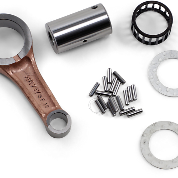 Caracteristicas: Heavy-duty OE replacement connecting rods Certified 8620 AISI steel provides superior strength Crankpins are manufactured from hot-rolled ASTM 4115 and case hardened to 58-62Rc Feature the latest in caged needle roller bearing designs for high rpm longevity Uniquely designed big end uses strategically located side scalloping and vent slots to minimize bearing race distortion at high rpm Small ends are double drilled to supply extra lubrication and cooling to the wrist pin bearing, which is especially important when the piston crown is close to the wrist pin bearing Shot-peened to eliminate surface stress risers and to smoothly blend together the rod forging's radiuses Double honing produces an ultra-round bearing surface for reliability at high rpm Most rod assemblies are sold complete with rod, crank pin, crank pin bearing, top-end bearing and silver-coated bronze phosphor thrust washers Compatible with Hot Rods and OE crankshafts Made in U.S.A.; connecting rod manufactured at Hot Rods Iowa facility