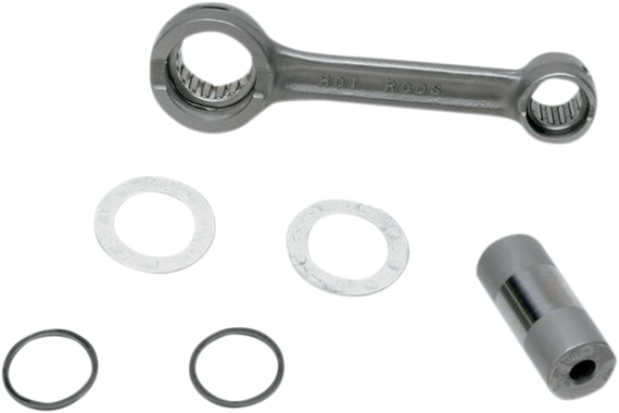Caracteristicas: Heavy-duty OE replacement connecting rods Certified 8620 AISI steel provides superior strength Crankpins are manufactured from hot-rolled ASTM 4115 and case hardened to 58-62Rc Feature the latest in caged needle roller bearing designs for high rpm longevity Uniquely designed big end uses strategically located side scalloping and vent slots to minimize bearing race distortion at high rpm Small ends are double drilled to supply extra lubrication and cooling to the wrist pin bearing, which is especially important when the piston crown is close to the wrist pin bearing Shot-peened to eliminate surface stress risers and to smoothly blend together the rod forging's radiuses Double honing produces an ultra-round bearing surface for reliability at high rpm Most rod assemblies are sold complete with rod, crank pin, crank pin bearing, top-end bearing and silver-coated bronze phosphor thrust washers Compatible with Hot Rods and OE crankshafts Made in U.S.A.; connecting rod manufactured at Hot Rods Iowa facility