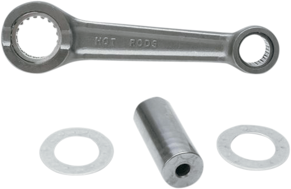 Caracteristicas: Heavy-duty OE replacement connecting rods Certified 8620 AISI steel provides superior strength Crankpins are manufactured from hot-rolled ASTM 4115 and case hardened to 58-62Rc Feature the latest in caged needle roller bearing designs for high rpm longevity Uniquely designed big end uses strategically located side scalloping and vent slots to minimize bearing race distortion at high rpm Small ends are double drilled to supply extra lubrication and cooling to the wrist pin bearing, which is especially important when the piston crown is close to the wrist pin bearing Shot-peened to eliminate surface stress risers and to smoothly blend together the rod forging's radiuses Double honing produces an ultra-round bearing surface for reliability at high rpm Most rod assemblies are sold complete with rod, crank pin, crank pin bearing, top-end bearing and silver-coated bronze phosphor thrust washers Compatible with Hot Rods and OE crankshafts Made in U.S.A.; connecting rod manufactured at Hot Rods Iowa facility