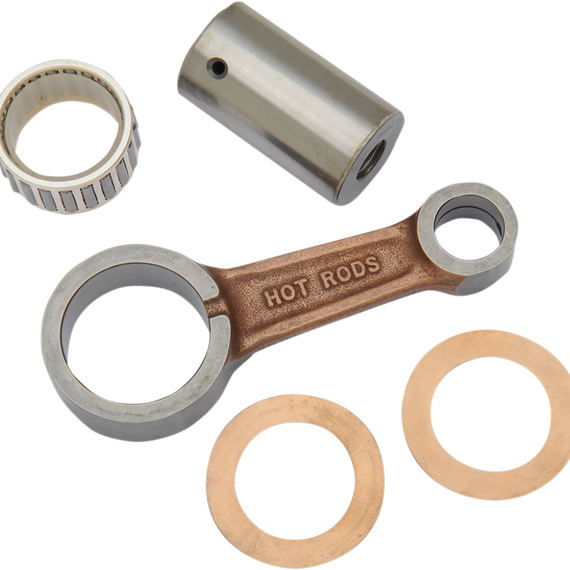 Caracteristicas: Heavy-duty OE replacement connecting rods Certified 8620 AISI steel provides superior strength Crankpins are manufactured from hot-rolled ASTM 4115 and case hardened to 58-62Rc Feature the latest in caged needle roller bearing designs for high rpm longevity Uniquely designed big end uses strategically located side scalloping and vent slots to minimize bearing race distortion at high rpm Small ends are double drilled to supply extra lubrication and cooling to the wrist pin bearing, which is especially important when the piston crown is close to the wrist pin bearing Shot-peened to eliminate surface stress risers and to smoothly blend together the rod forging's radiuses Double honing produces an ultra-round bearing surface for reliability at high rpm Most rod assemblies are sold complete with rod, crank pin, crank pin bearing, top-end bearing and silver-coated bronze phosphor thrust washers Compatible with Hot Rods and OE crankshafts Made in U.S.A.; connecting rod manufactured at Hot Rods Iowa facility