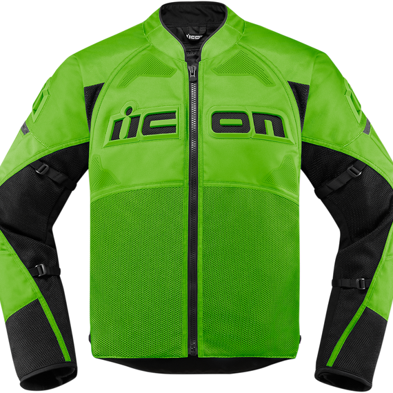 Caracteristicas: Durable nylon chassis Tried-and-true Iron Weave Mesh™ panels allow intake and exhaust airflow, dramatically reducing the chance of overheating Reinforced with ballistic nylon in the tumble zones Industry-leading removable CE-certified D3O® shoulder, elbow, and back impact protectors Cuff vents, reflective accents and anti-flap arm straps Removable, insulated SatinCore™ liner adds versatility for suddenly-changing weather Ratchet waist closure for a better fit Thermoplastic Polyurethane (TPU) chest badging Icon® Sport fit with straight body and articulated arms