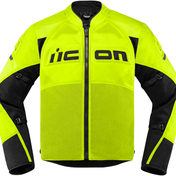 Caracteristicas: Durable nylon chassis Tried-and-true Iron Weave Mesh™ panels allow intake and exhaust airflow, dramatically reducing the chance of overheating Reinforced with ballistic nylon in the tumble zones Industry-leading removable CE-certified D3O® shoulder, elbow, and back impact protectors Cuff vents, reflective accents and anti-flap arm straps Removable, insulated SatinCore™ liner adds versatility for suddenly-changing weather Ratchet waist closure for a better fit Thermoplastic Polyurethane (TPU) chest badging Icon® Sport fit with straight body and articulated arms