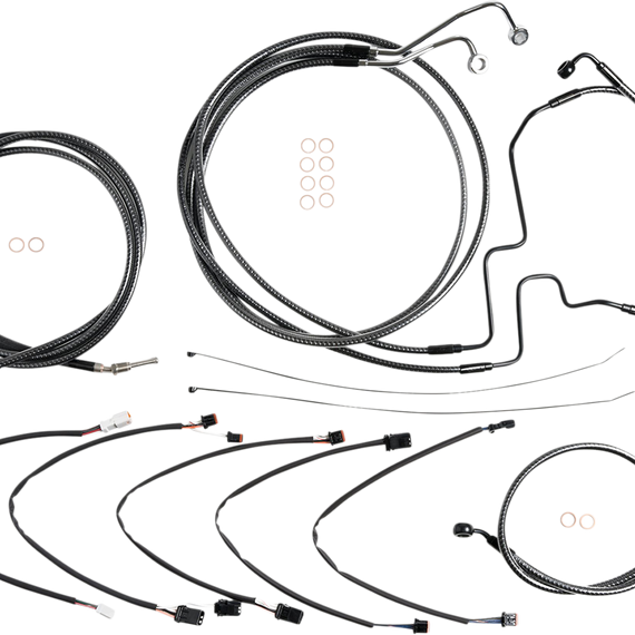 • Kits include – Premium DOT brake lines, clutch cable or hydraulic clutch line, throttle and idle cables or throttle-by-wire extensions, hardware, and fully terminated or plug-and-play switch and turn signal extensions