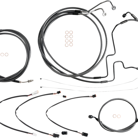 • Kits include – Premium DOT brake lines, clutch cable or hydraulic clutch line, throttle and idle cables or throttle-by-wire extensions, hardware, and fully terminated or plug-and-play switch and turn signal extensions