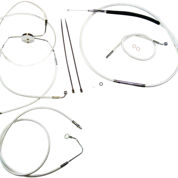 • Kits include throttle and idle cables of throttle-by-wire extensions, clutch cable or hydraulic clutch line, brake lines, copper crush washers, hardware, and any necessary switch wiring of turn signal extension