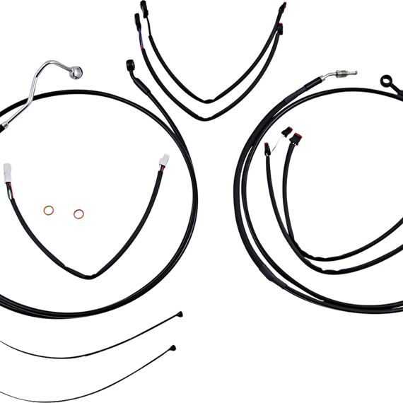 Caracteristicas: Magnum XR Handlebar Installation Kits offer a great fit and excellent quality at an economical price Kit features highly polished, chrome plated fittings All cables are a low effort, high efficiency design that meets or exceeds all OE specifications for fitment, construction, endurance Magnum XR Brake Lines use an enhanced construction of heavy gauge stainless steel embedded in tough abrasion resistant nylon outer jacket for superior durability and extreme braking response for safe riding The coating on cables and brake lines offers exceptional protection for paint or chrome Kits that include manifolds use an all brazed construction to ensure optimal OE fitment and appearance Manifolds use -3 AN connections for an easy installation Kits include throttle and idle cables or throttle-by-wire extensions, clutch cable or XR hydraulic clutch line, XR brake lines, copper crush washers, hardware, turn signal and switch wiring extensions Kits are based on using ape hanger style handlebars and 2" risers.