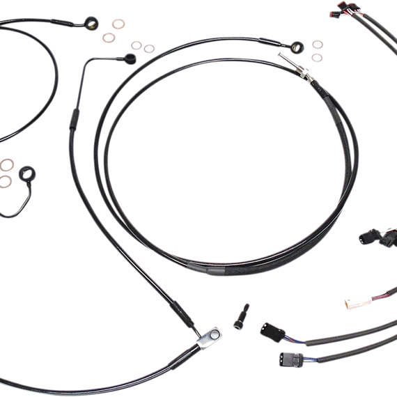 • Kits include throttle and idle cables or throttle-by-wire extensions, clutch cable or XR hydraulic clutch line, XR brake lines, copper crush washers, hardware, turn signal and switch wiring extensions