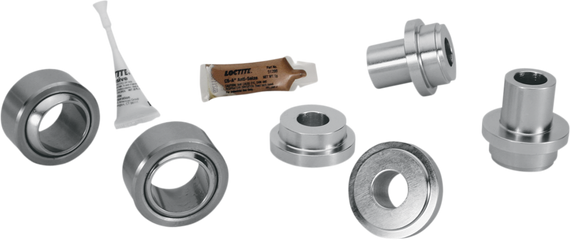 Caracteristicas: Replaces stock Cleve Bloc style swingarm bushings with spherical bearings Dramatically changes handling and tracking of Dresser models Spherical bearings greatly reduce the stiction at the swingarm pivot, which provides a quicker reaction time to harsh road conditions Negates any lateral and torsional movement in the swingarm Made in the U.S.A.