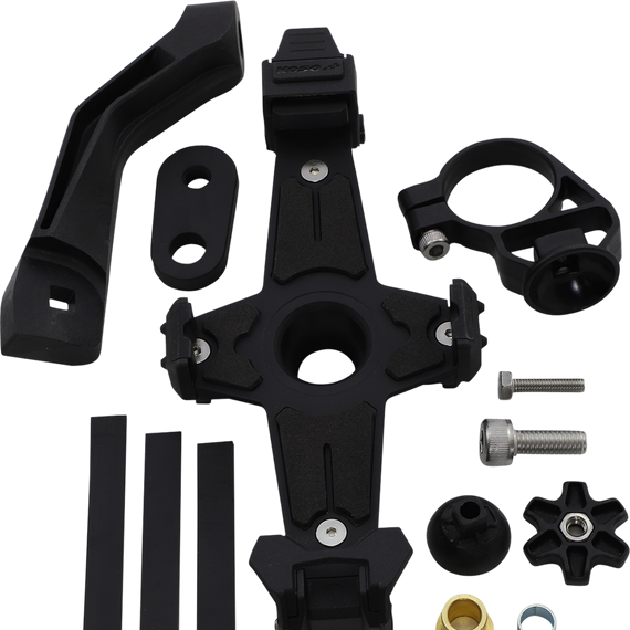 Caracteristicas: Easy adjustable screws, located on the back, lock the desired positioning securely into place Fits 7/8” to 1-1/4” handlebars Six-way adjustable Quick release & lock function design Allows user to find best position with free adjustment and 360° rotation Works with M8 or M10 thread size