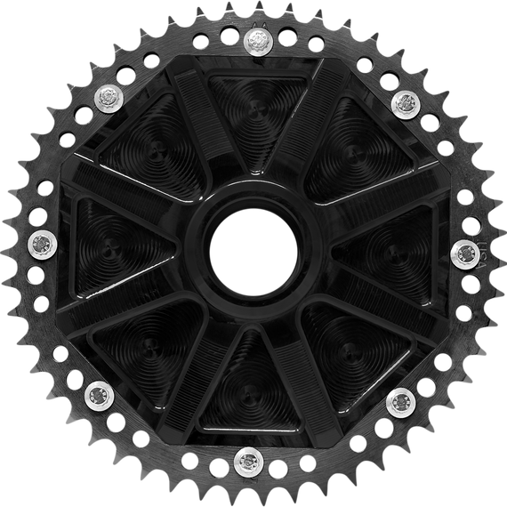 Caracteristicas: CNC-machined billet aluminum carrier and hub adapter CNC-machined sprocket made of 1026 medium- to high-carbon steel Fits stock or aftermarket wheel Made in the U.S.A.
