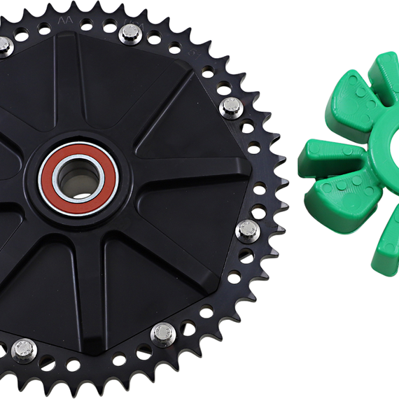 Caracteristicas: CNC-machined aluminum carrier 1026 medium-to-high carbon steel CNC-machined sprocket Includes stainless steel lock spring, two bearing and bearing spacer Use with a .750" offset front sprocket (sold separately) Made in the U.S.A.