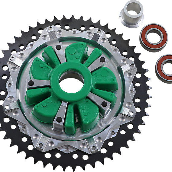 Caracteristicas: CNC-machined aluminum carrier 1026 medium-to-high carbon steel CNC-machined sprocket Includes stainless steel lock spring, two bearing and bearing spacer Use with a .750" offset front sprocket (sold separately) Made in the U.S.A.
