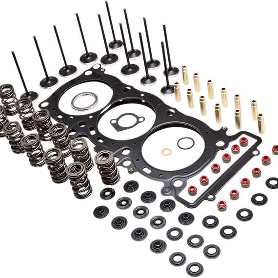 Caracteristicas: Kits contain all items to completely refresh and upgrade cylinder heads for popular Dirt/MX and Side x Side models Cylinder Head Service Kits include the below components: Lightweight Racing Valve Spring kits with steel or titanium retainers, beehive or dual valve springs, steel basewashers and Viton® valve stem seals A full set of C630 bronze high-performance valve guides for durability and heat management (standard size) A full top-end gasket kit including (base gasket, engine case gasket, exhaust gasket, head gasket, and other o-rings/washers depending on application)
