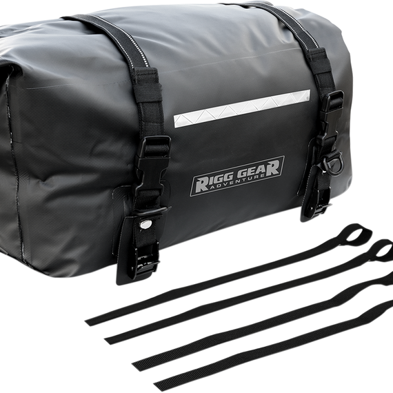 Caracteristicas: Easily mount to tail section or saddlebags with heavy-duty quick-release anodized aluminum cam buckles and nylon webbing Hi-visibility reflective accents on front, sides and adjustable compression straps Made from durable 24 oz. Tarpaulin PVC with electronically heat-welded seams to be 100% waterproof Outer material is coated to prevent slipping and marking Feature a firm base panel and removable internal stiffener, so the bag keeps its shape even when empty Main compartment measures 20" L x 10" W x 12" H Holds 39.33 liters