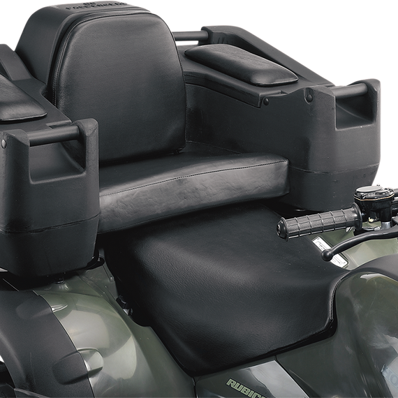 Caracteristicas: Constructed from UV-stabilized impact-resistant polyethylene Mounts to rack with included U-bolts Features include locking latches, reflectors, foam grips and arm and back pads Seat area measures 3" thick x 15-1/4" L x 23-23-3/4" W; overall dimensions are 25-3/8" L x 41-5/8" W x 17-3/4" H Available in black with black pads Not for Polaris models with rack extensions. Not to be used as a seat while riding.