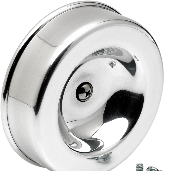 Caracteristicas: Features a hand-spun 5-3/8" polished aluminum cover with a high-quality element for high flow as well as superior protection from dust and dirt Includes a black powder-coated backing plate and all necessary mounting hardware Made in the U.S.A. Will require the separate purchase of a crankcase breather/carb support bracket kit.