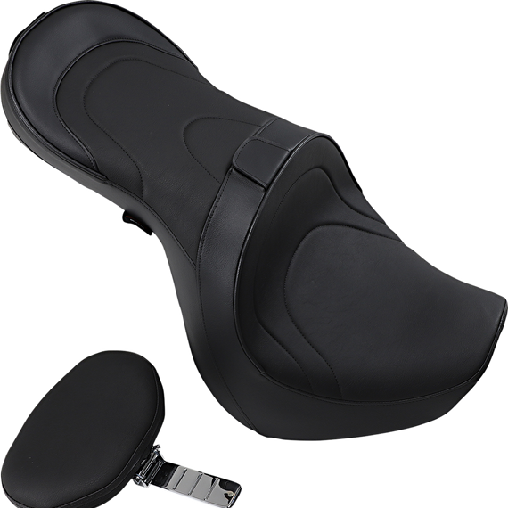 Caracteristicas: Solar-reflective leather in the seating area and automotive-grade vinyl on the sides; patented process reduces surface temperature by as much as 25°F for a cooler seat, higher durability and longer life over conventional leather or vinyl Low-profile design with molded flexible urethane foam interior for improved seating position and maximum comfort 3/16" ABS thermoformed seat base for a perfect fit, and fully carpeted bottom with rubber bumpers to protect paint Features backrest capability for both driver and passenger Seats' internal EZ Glide systems feature virtually no metal-to-metal contact with the backrest detent bars; bars are securely suspended in place using synthetic composites that virtually eliminate corrosion and wear Seats' detent tab is a rust-free advanced polymer and is what allows for the smooth operation of the EZ Glide systems; passenger backrest position on seats features a locking screw for additional security over detent tab Optional backrests feature solar-reflective leather cover and multiple detents with virtually no metal-to-metal contact for vertical and fore/aft pad adjustment - sold separately Made in the U.S.A.
