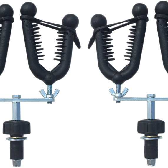 Caracteristicas: Gun and bow rack for use with Polaris brand ATVs and side-by-side RZR Lock & Ride® systems Quick and easy to attach High-quality Pack Rack® Plus components Soft rubber fins cushion and hold items securely Forks rotate a full 360 degrees, so just twist the fork and lock the wing nut for a custom fit Rubber snubbers are included for use in rough terrain