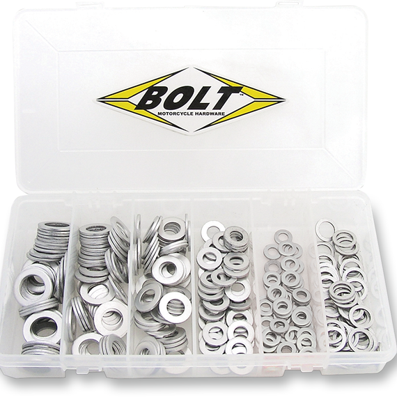 Caracteristicas: Soft tempered aluminum washers designed to seal in fluids Most OEMs recommend replacement at each oil or coolant change Includes a set of 50 of each: M6 drain plug washers, M8 drain plug washers, M10x18 drain plug washers, M12 drain plug washers, M14 drain plug washers, M10 banjo washers