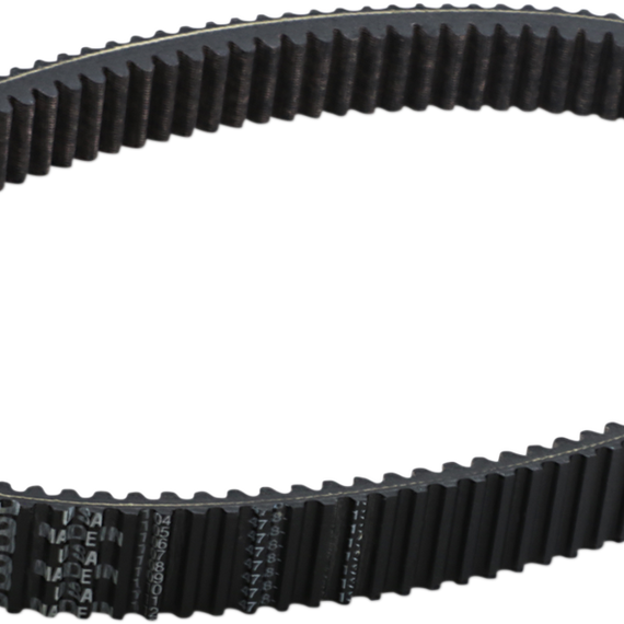 Caracteristicas: Carbon fiber with superior cord tensile strength and DUMAX™ top cog compound to retain cord rigidity and better adhesion of top cog to cord construction Engineered to keep maximum under-cord stiffness across the belt while giving stable cord construction base and allowing the belt to flew for efficiency and cool running temperatures Belts won't expand or bulge out under top cog under squeeze pressure