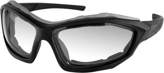 Caracteristicas: Closed cell foam gives wearer comfort and blocks out wind, dirt and dust Goggle strap included allows for converting these sunglasses into goggles Polycarbonate frame and lenses with anti-fog coating to keep lenses clear Anti-fog photochromic lenses (V.L.T. 85-24%) Shatter resistant polycarbonate lenses 100% UV protection Removable foam ANSI Z80.3 Includes removable foam, goggle strap, carry case and microfiber cloth