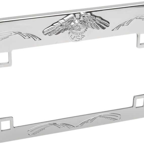Caracteristicas: Three-dimensional eagle emblem centered on top of the frame For use with 4" x 7" license plates