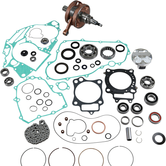 Caracteristicas: Convenient one-stop shop in a box; nearly all components required for a complete and professional rebuild Vertex piston kit (standard compression piston, rings, pin and clips) Hot Rods heavy-duty crank (stock stroke ƒ?? includes wrist pin bearing for two strokes) Hot Rods main bearing/seal kit Hot Rods transmission bearing kit (includes transmission bearings, output shaft collar and sprocket lock washer) Hot Rods counter balancer bearing kit Hot Rods water pump bearing and seal kit Vertex complete gaskets kit, including seals and O-ring kit (covers top and bottom)