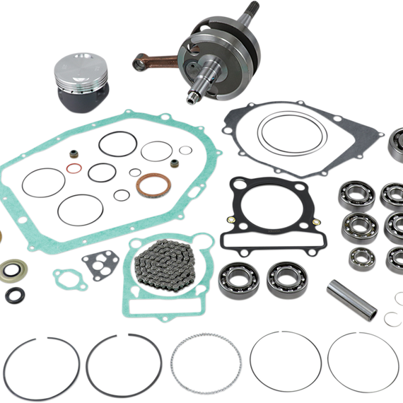 Caracteristicas: Convenient one-stop shop in a box; nearly all components required for a complete and professional rebuild Vertex piston kit (standard compression piston, rings, pin and clips) Hot Rods heavy-duty crank (stock stroke Æ’?? includes wrist pin bearing for two strokes) Hot Rods main bearing/seal kit Hot Rods transmission bearing kit (includes transmission bearings, output shaft collar and sprocket lock washer) Hot Rods counter balancer bearing kit Hot Rods water pump bearing and seal kit Vertex complete gaskets kit, including seals and O-ring kit (covers top and bottom)