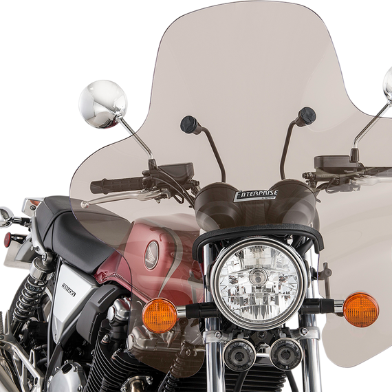 Caracteristicas: A full-size bolt-on fairing for excellent protection from the elements; even provides coverage below the headlight High-strength, 3/16" acrylic Four-point, fully adjustable mounting for versatility Anodized aluminum support rods; logo graphics Round or rectangular headlights Fits both 7/8" and 1" handlebars Made in the U.S.A.