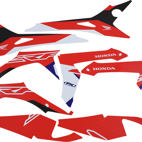 • Includes left and right shroud, airbox and tank (if applicable) decals