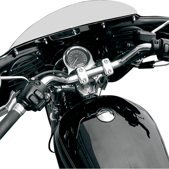 Caracteristicas: Superb wind protection and great-sounding audio with a classic style Constructed of hand-laid fiberglass making it stronger than ABS plastic and only 20 lb. Finished in gloss black gel-coat Includes two 6" marine-grade speakers and amplifier 3.5mm mini-jack MP3/auxiliary input port with detachable 3' patch cord Includes 5" clear windshield, will accept 96-13 FLHT OEM style and aftermarket replacement windshields (sold separately) (some drilling and trimming may be required) Quick-detach power cord allows simple on and off in less than five minutes Fairing mounts to OEM windshield mounting points Made in the U.S.A. H-D quick-detach windshield bracket mounts and front directional relocation kit not included with fairing.