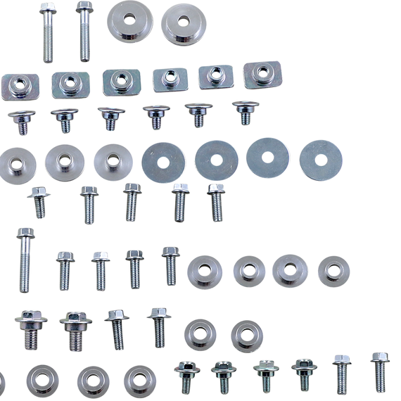 Caracteristicas: Include all factory replica fasteners and aluminum bushings needed to fasten complete bodywork Works kit include drilled aluminum washers Replacement OEM-style bolts and collar bushings for bodywork installation available separately Made in the U.S.A.