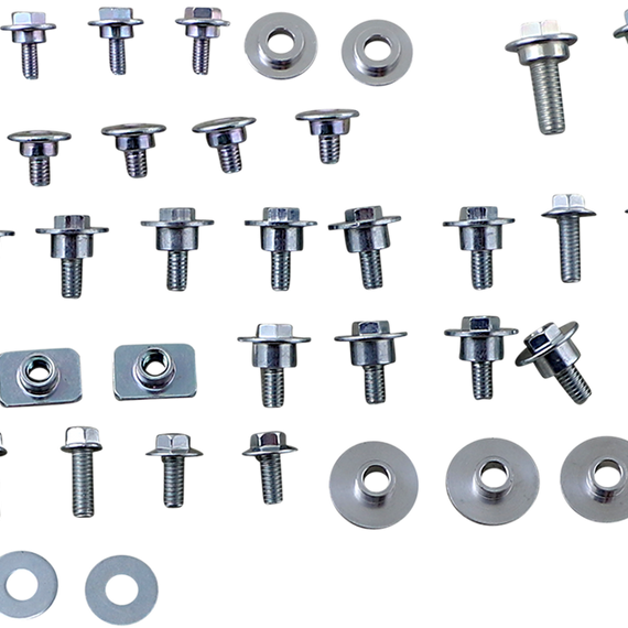 Caracteristicas: Include all factory replica fasteners and aluminum bushings needed to fasten complete bodywork Works kit include drilled aluminum washers Replacement OEM-style bolts and collar bushings for bodywork installation available separately Made in the U.S.A.