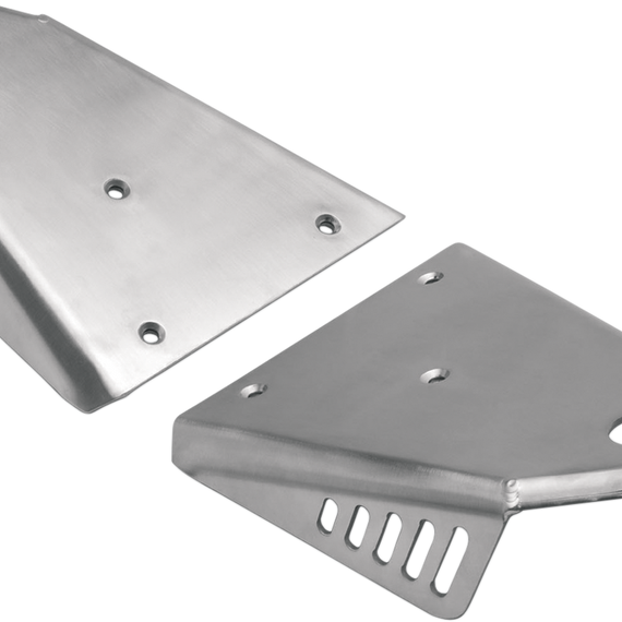 Caracteristicas: These 0.190" thick guards protect important steering and suspension components Guards wrap around the front A-arm to protect lower shock and mounting bracket Manufactured from aircraft aluminum sheet metal