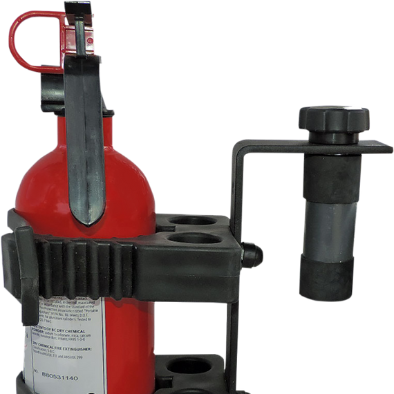 Caracteristicas: Thick padding with twin straps fastens to roll cage of utility vehicles Drawstring top with cord lock secures fire extinguisher in place for mounting in any direction Also fastens to tubular racks on ATVs For use with most household or shop fire extinguishers