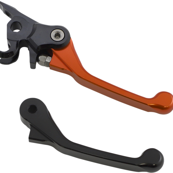 Caracteristicas: Breakaway "slim flex" lever design 6061 billet aluminum CNC construction with hard anodized finish Smooth, round lever shape provides excellent feel and control Adjustable for hand size and designed to rotate forward during impact Built with stainless steel pivot mechanism for strength and durability Manufactured to tight tolerances to specifically fit OEM perch assembly and boot Industry leading design to reduce weight, improve rider function and performance Laser-etched logos One colored lever and one black lever included in each kit