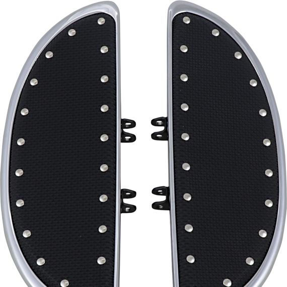 Caracteristicas: Bowed floorboards feature machined billet construction, chrome-plated finish with black rubber inserts. Made in the U.S.A.