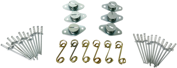 Caracteristicas: Takes the guesswork out of mounting both racing fiberglass or ABS replacement bodywork Includes all the necessary hardware to do the job right the first time around Each kit contains six fasteners and all supporting hardware including anti-scratch washers, rivets and springs or clips
