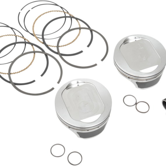 Caracteristicas: Pistons forged from 4032 aluminum alloy Offset pin design for quiet operation Each kit contains two pistons, pins, spiral-lock pin clips and Hastings moly rings Piston pin lock rings available separately Replacement rings are also available separately