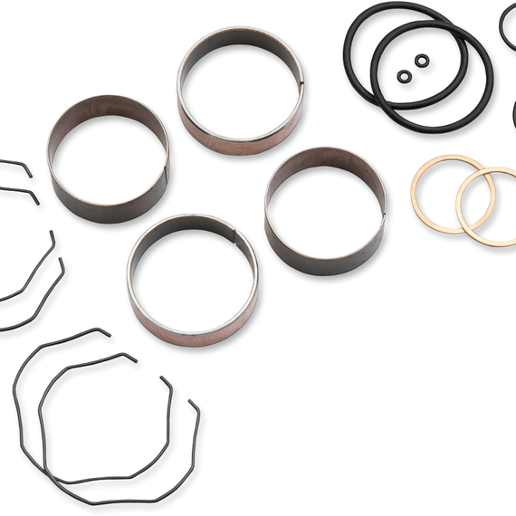 Caracteristicas: Bushings are dyno-tested to 500,000 strokes with less wear than OEM bushings Kit includes two slider bushings and two leg bushings Kit includes all copper washers and O-rings Kit includes two fork seal snap rings