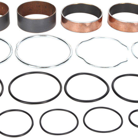 Caracteristicas: Bushings are dyno-tested to 500,000 strokes with less wear than OEM bushings Kit includes two slider bushings and two leg bushings Kit includes all copper washers and O-rings Kit includes two fork seal snap rings