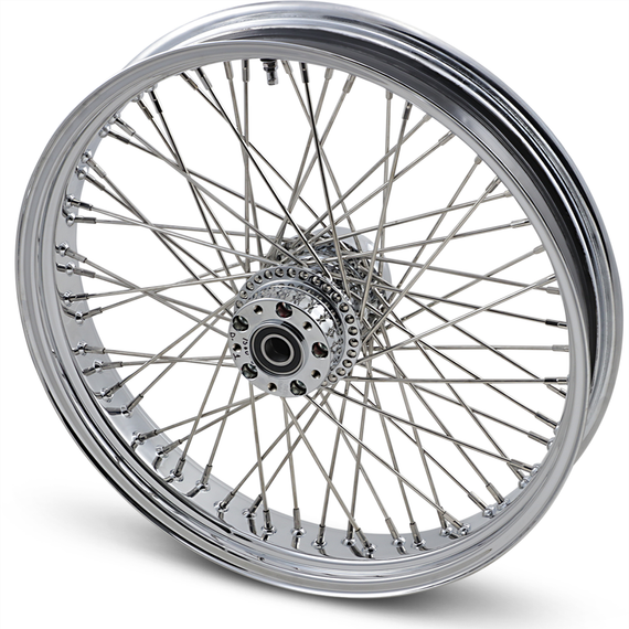 Caracteristicas: Chrome billet aluminum hubs with polished stainless steel spokes and polished stainless steel nipples Wheels come completely assembled and are trued to less than .005" runout Made in the U.S.A. by RideWright Wheels Classic, tube-type spoke design Chrome-plated steel rims DOT approved